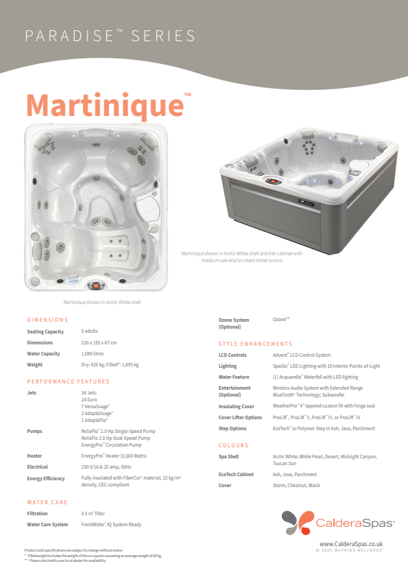 The Caldera Martinique™ is an attractive, spacious and contemporary hot tub.
