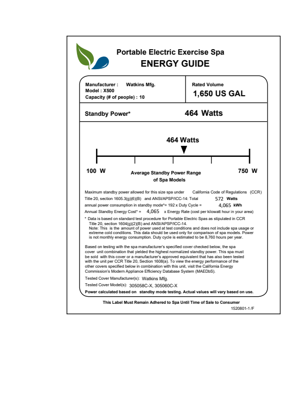 Energy Efficiency Certified to the APSP14 National Standard and the California Energy Commission (CEC) in accordance with California Law