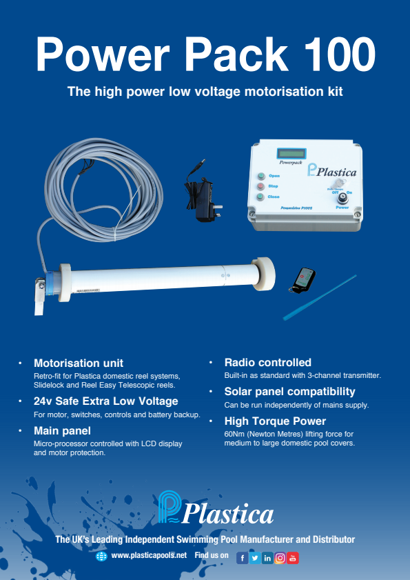 • Semi-automatic motorisation system suitable for domestic pools up to 75m² (800ft²)