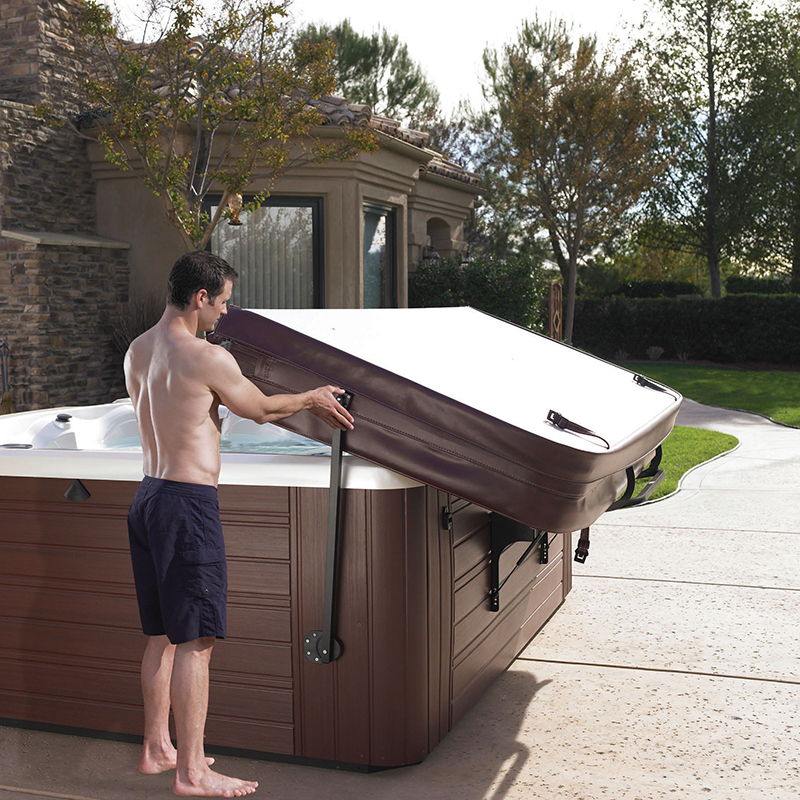 Springs do the heavy lifting, so that very little effort is required to lift or replace the cover, even on the larger spa models.
