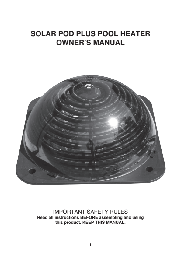 The Solar Pod Plus is an ideal solar heating system for above ground swimming pools. Strong poly carbonate dome with coils made of strong polypropylene. Easily connected together, simply add multiple units for larger swimming pools.