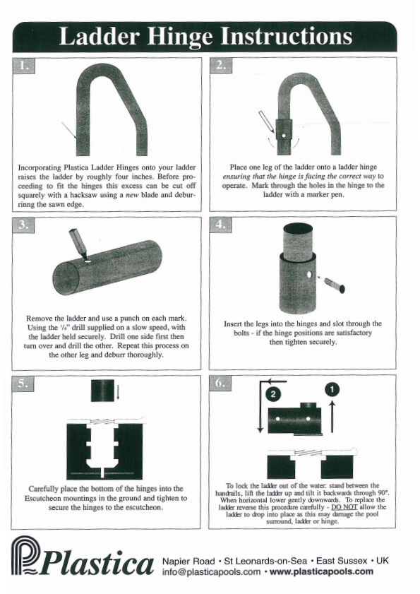 Pool ladder hinges made from grade 304 stainless steel.  Enables the pool ladder to be lifted and locked into an upright position so you can pull the pool cover across with ease.