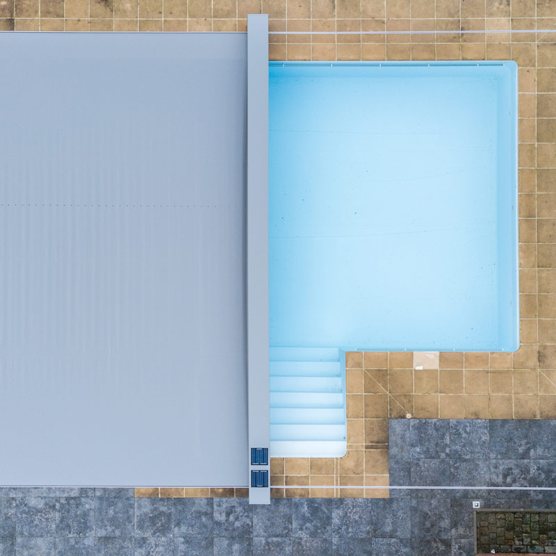 Powered by photovoltaic solar panels, the cover features a tensioned high-performance membrane by Serge Ferrari and operates on discreet 10mm rails that are nearly flush with your poolside.