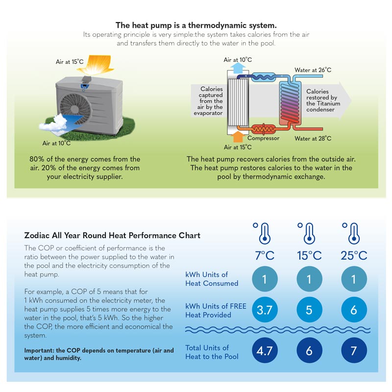 The Zodiac Z550iQ MD4 Heat Pump features full inverter technology for quiet, energy-efficient pool heating. Easy to install and highly efficient, it draws up to 80% of its heating energy from the surrounding air.